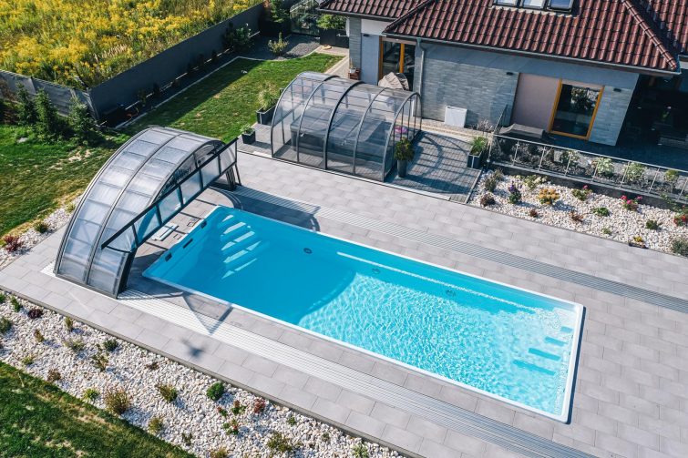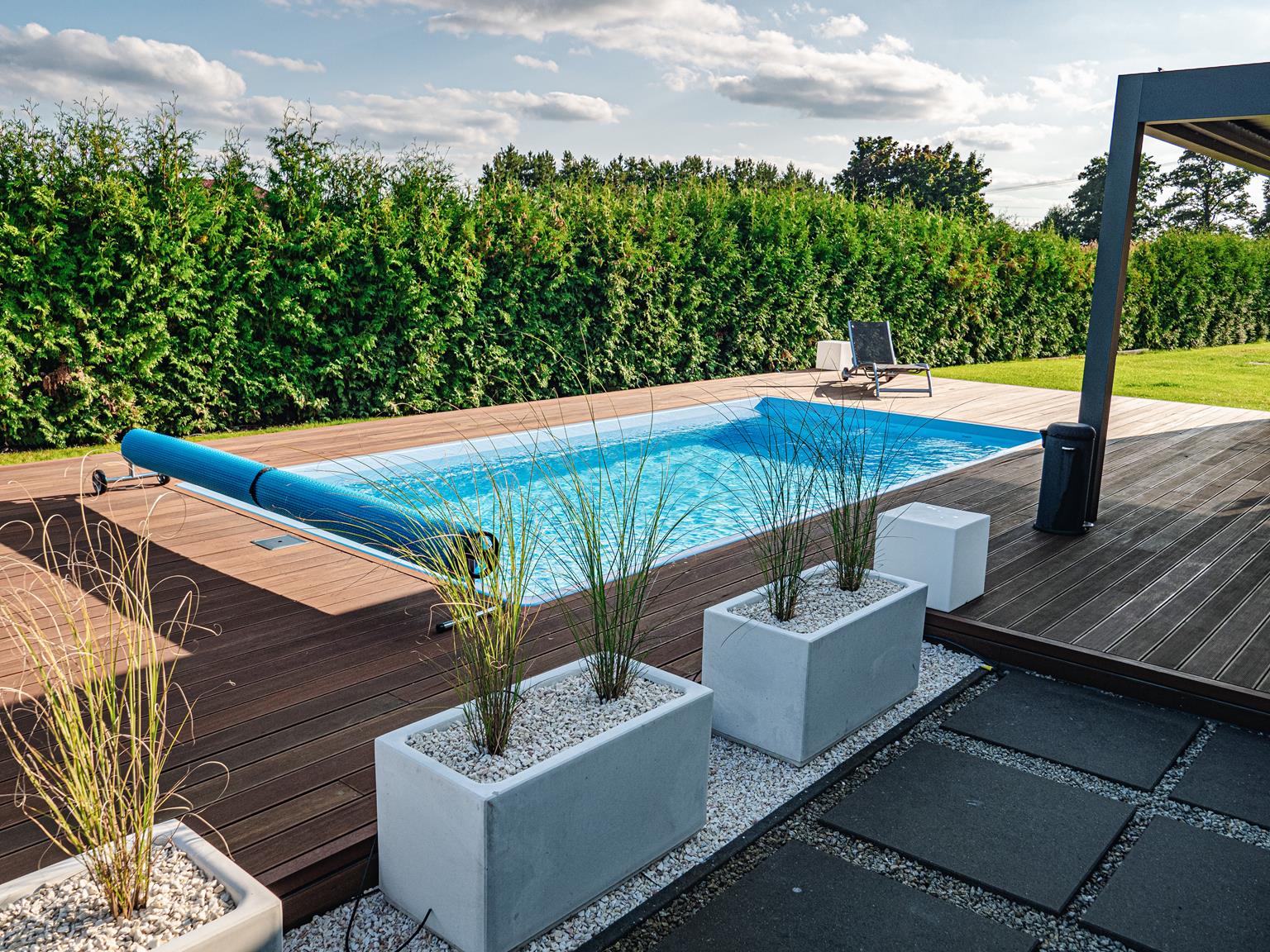 Välj din pool – alternativen sträcker sig från 2 meter runda minipooler till 11 meter långa simbassänger.