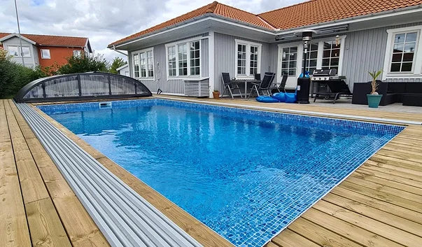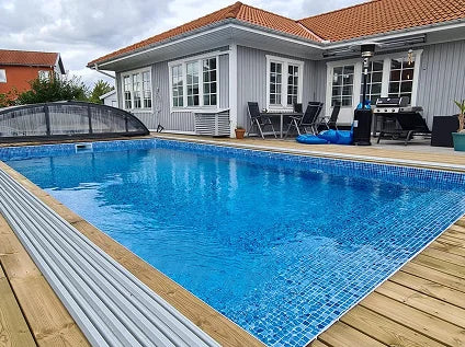 En poolvärmepump är nödvändig om du vill värma poolvattnet till 30 grader, det betyder att du kan använda poolen från mars till oktober. Pooltak är också ett populärt pooltillbehör som isolerar poolen och förhindrar att smuts eller löv kommer ner i poolen, och skyddar barn och djur från att rulla ner i poolen. -