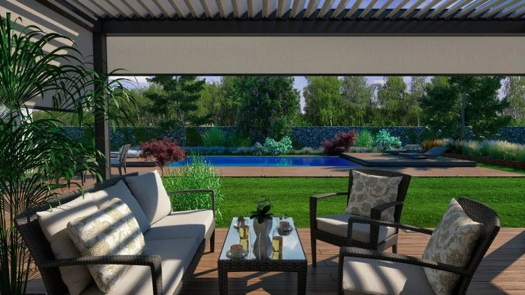 Den motoriserade funktionen ökar också säkerheten, eftersom du snabbt kan stänga uteplatsen om barn eller husdjur är nära poolen. Det ger en extra säkerhetsnivå, där teknik och design samverkar för att skapa en trygg miljö för hela familjen.