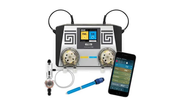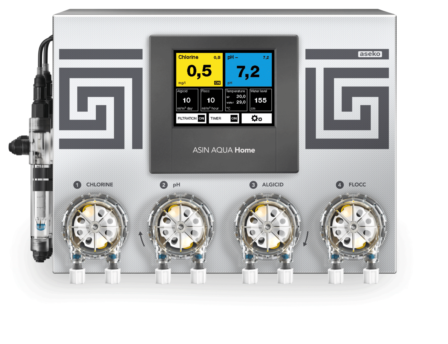 Vill du njuta av din pool eller underhålla den? Våra kunder väljer att överlåta underhållet till ett automatiskt doseringssystem som kontrollerar poolvattnet och doserar pH-minus, flytande klor, flockuleringsmedel och algmedel efter behov. Värdena kan avläsas i mobiltelefonen, så att du undviker att överdosera poolen .